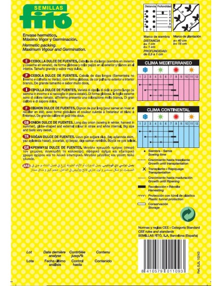Long day onion (sowing in winter, harvest in summer), globe-shaped and external colour in straw and white internal. Big size and taste