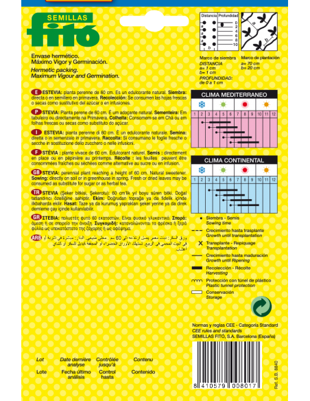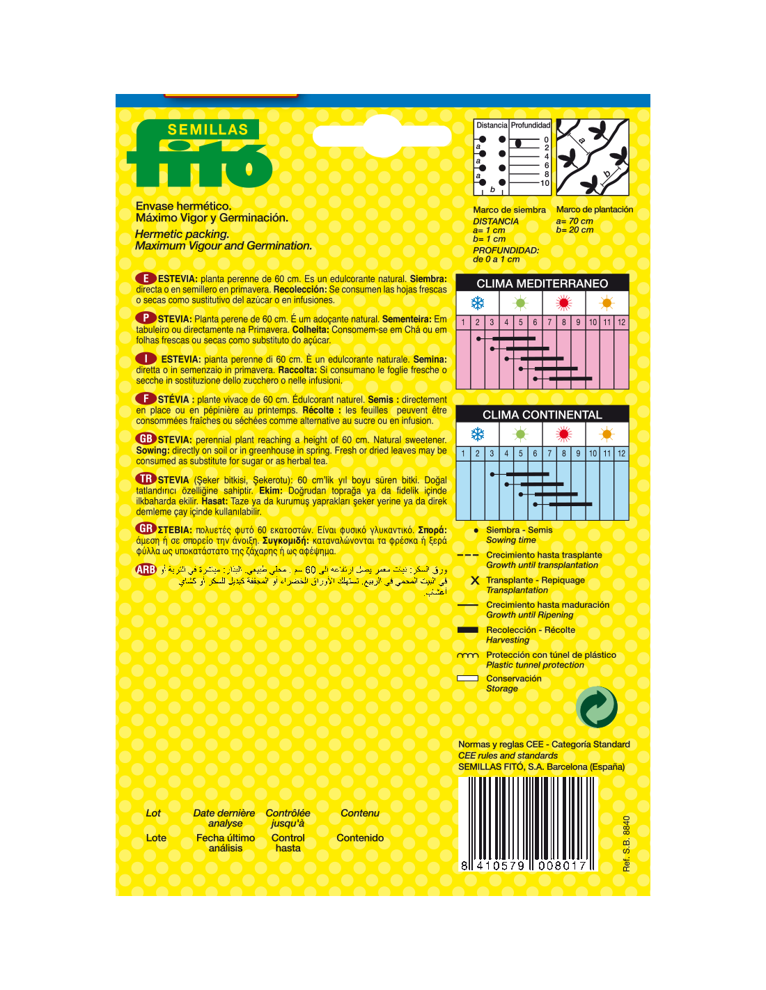 La estevia es una planta perenne que llega a alcanzar 60 cm de alto. Sus hojas, de 3 a 4 cm, son elípticas y con borde ligeramente aserrado.