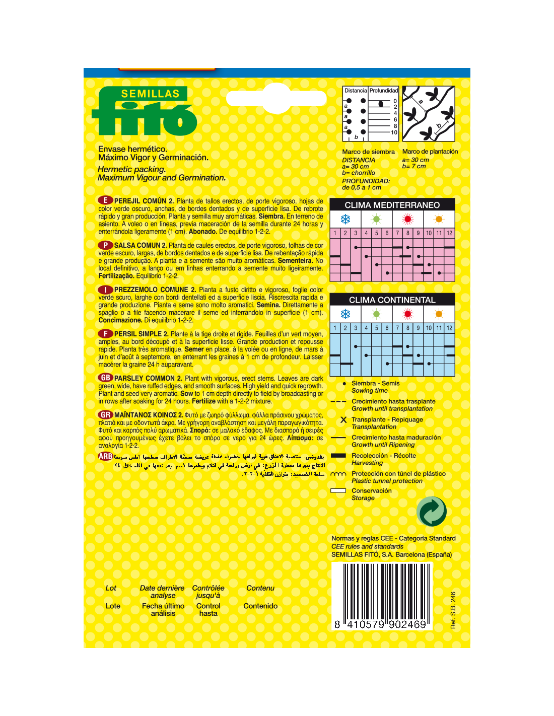 El Perejil es una planta bianual que el primer año forma una roseta de hojas y el segundo el tallo floral, con flores poco vistosas, amarillas.