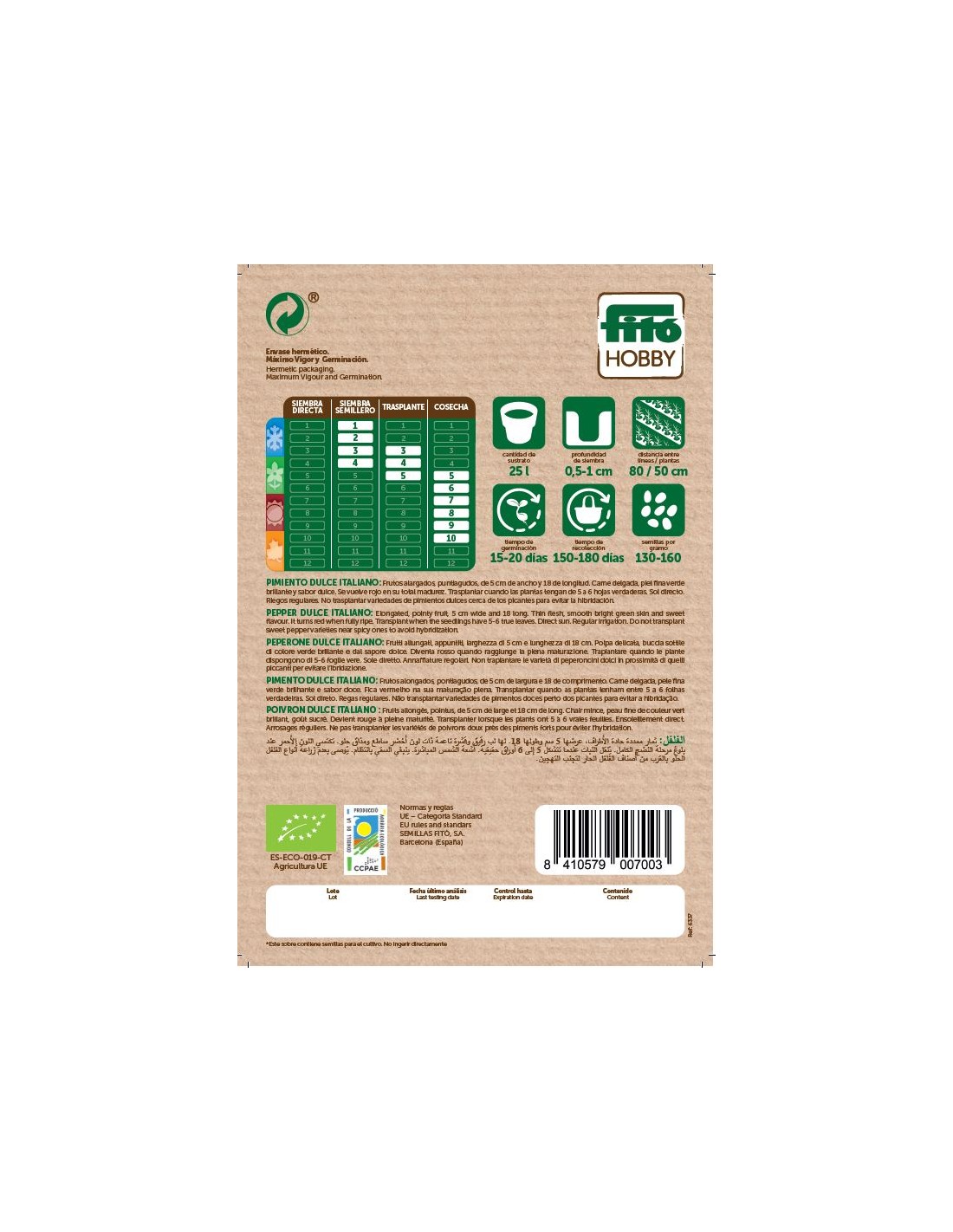 Planta de tallos erectos, de porte vigoroso, hojas de color verde oscuro, anchas, de bordes dentados y de superficie lisa. De rebrote rápido y gran producción. Planta y semilla muy aromáticas.