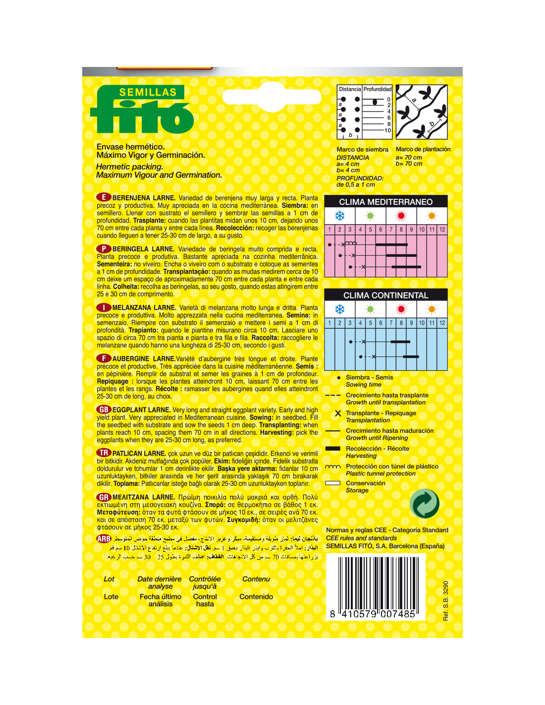 Variedad de berenjena muy larga y recta. Planta precoz y productiva. Muy apreciada en la cocina mediterránea.