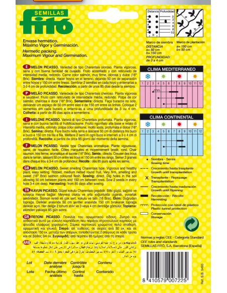 Variedad de tipo Charentais oloroso. Planta vigorosa, sana y con buena facilidad de cuajado. Fruto acostillado y con reticulado de intensidad media, redondo. Carne color salmón, muy firme, olorosa y dulce (16ª Brix).