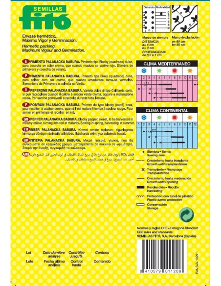 Pimiento tipo Blocky (cuadrado) dulce, para cosecha en color crema, que cuando madura se vuelve rojo. Siembra de primavera y cosecha de verano