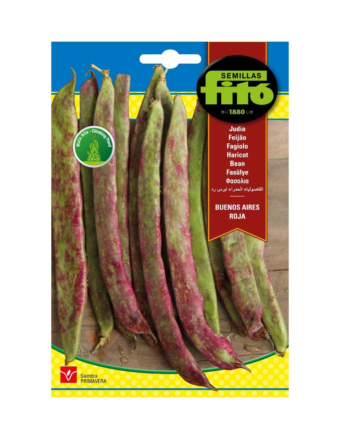 Mata alta. Vaina plana verde. Vainas largas y anchas, ligeramente arqueadas, jaspeado rojizo sobre fondo verde. Grano: Marrón jaspeado, grande.