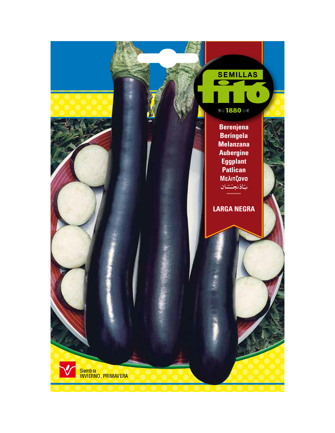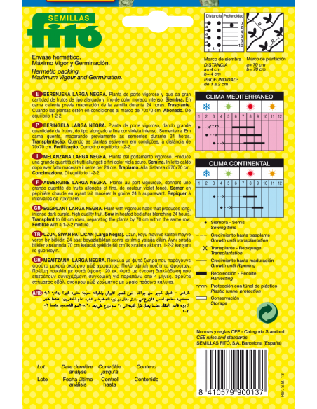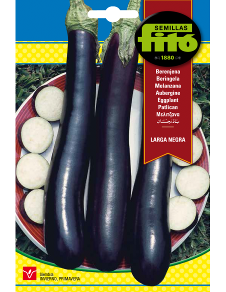 Esta variedad da una gran cantidad de frutos alargados de color morado intenso.