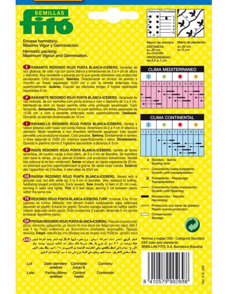 Variedad de raíz globosa, de color rojo con la punta blanca. Es muy resistente a pasarse. Generalmente se comen crudos, pero también se pueden cocinar.