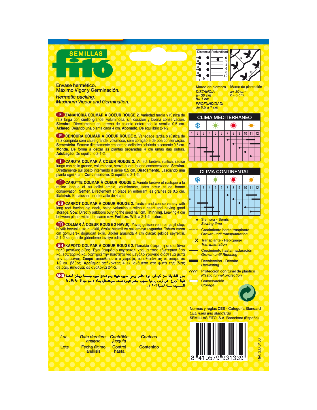 Es una planta bianual que el primer año desarrolla un roseta de hojas finamente dentadas y produce una raíz donde acumula gran cantidad de reservas. El segundo año emite un tallo floral de donde salen las flores amarillentas agrupadas en umbelas. Esta variedad produce zanahorias cilíndricas de color anaranjado.